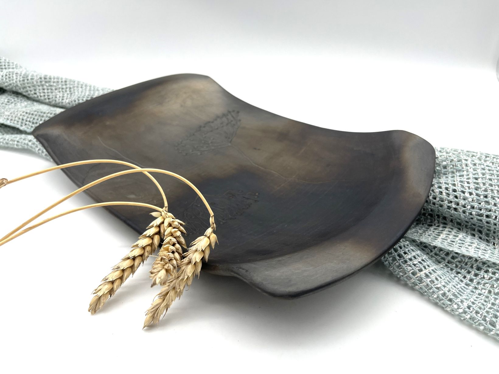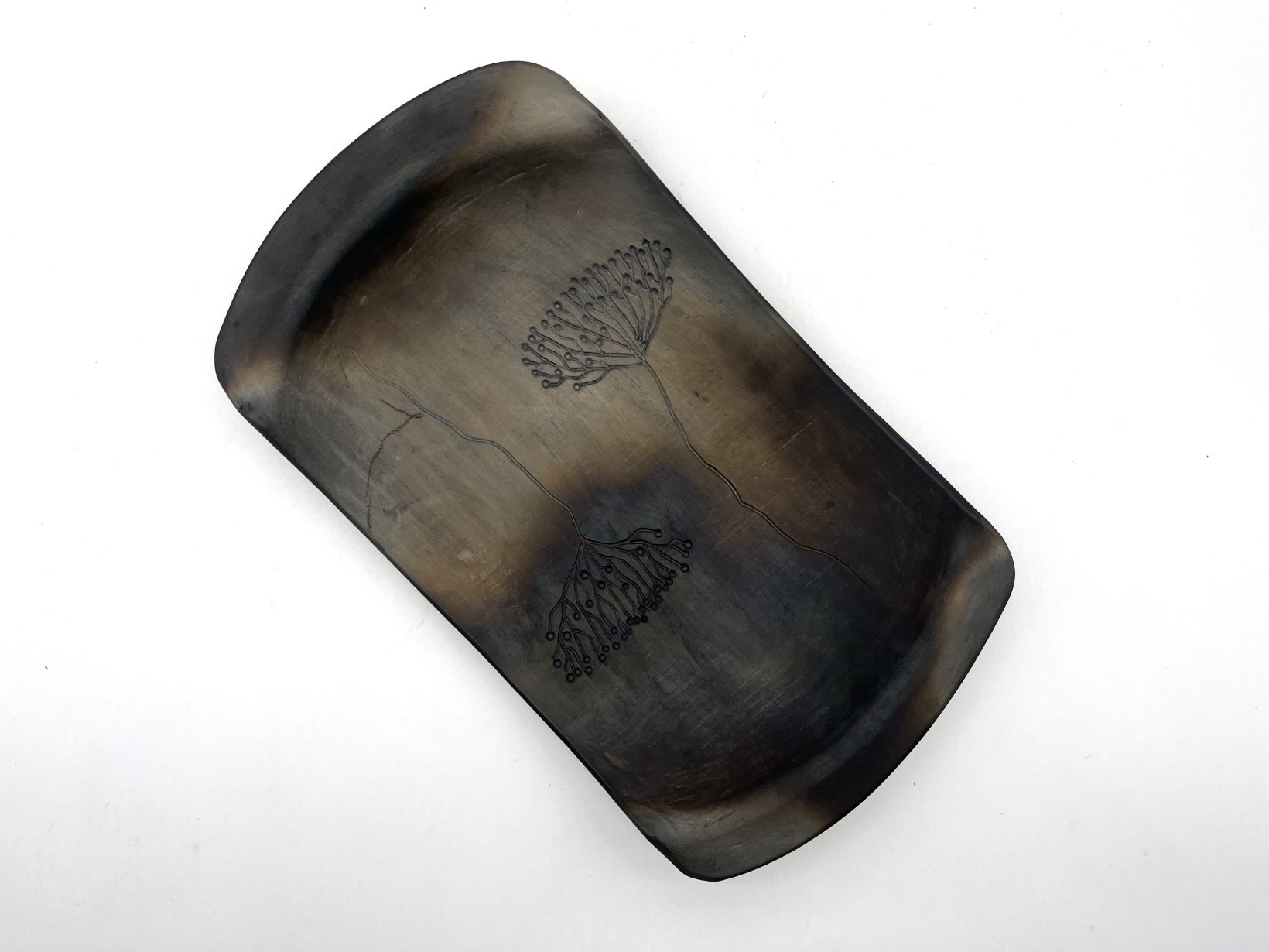 Veidots ar rokām plastu tehnikā no Latvijas māla un apdedzināts atklātās uguns krāsnī melnajā/svēpētajā tehnikā. Apdedzināšanas temperatūra 1050 °C. Dekorēts gravēšanas tehnikā, izmantojot dabas rakstu motīvus.